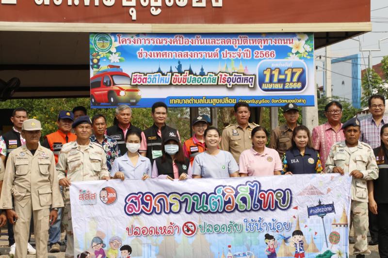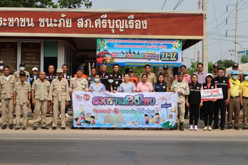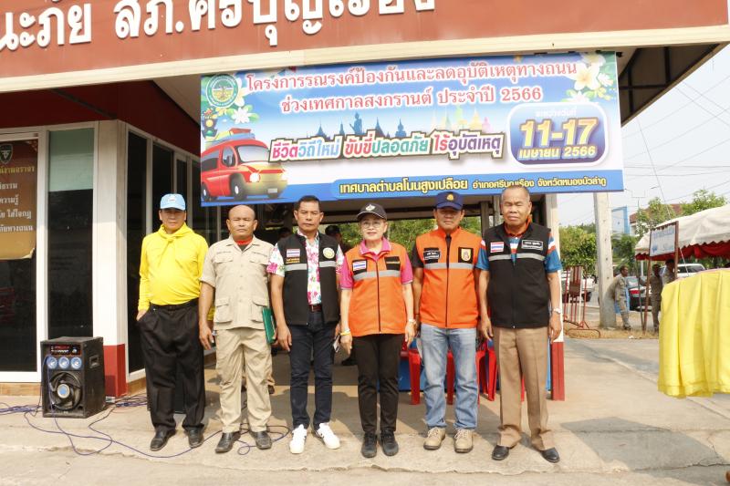 รายละเอียด : วันที่ 11 เมษายน 2566 เวลา 09.00 น. นางปาลิดา คำพิบูลย์ นายกเทศมนตรีตำบลโนนสูงเปลือย กล่าวรายงานจุดตรวจหลัก ศูนย์ปฏิบัติการป้องกันและลดอุบัติเหตุทางถนนช่วงสงกรานต์ วันที่ 11-17 เมษายน 2566 โดยมี นายเพทาย จรกระโทก นายอำเภอศรีบุญเรือง เดินทางเป็นประธานในพิธี เพื่อเป็นมาตรการป้องกันและลดอุบัติเหตุทางถนนช่วงสงกรานต์ ณ สี่แยกไฟแดง จุดตรวจ สภ.ศรีบุญเรือง