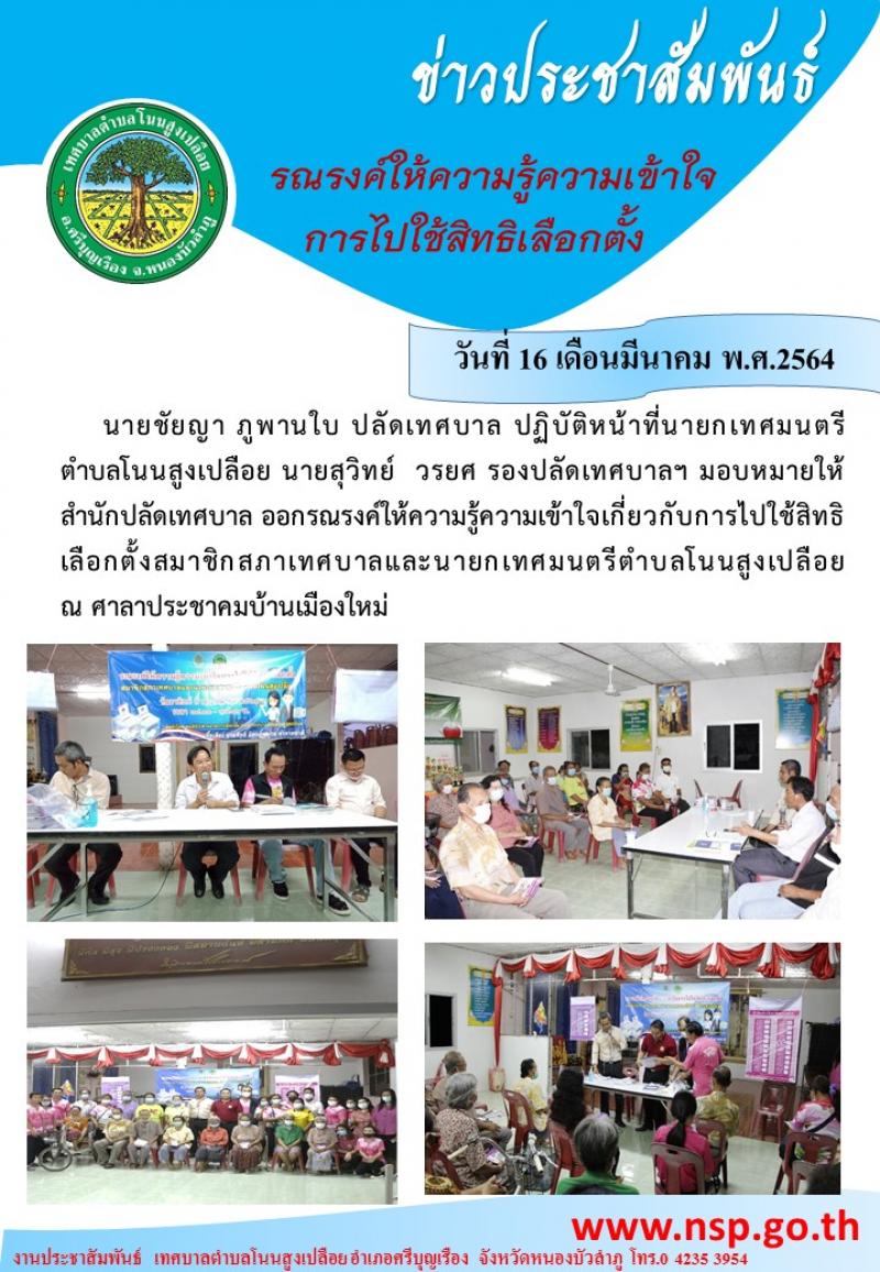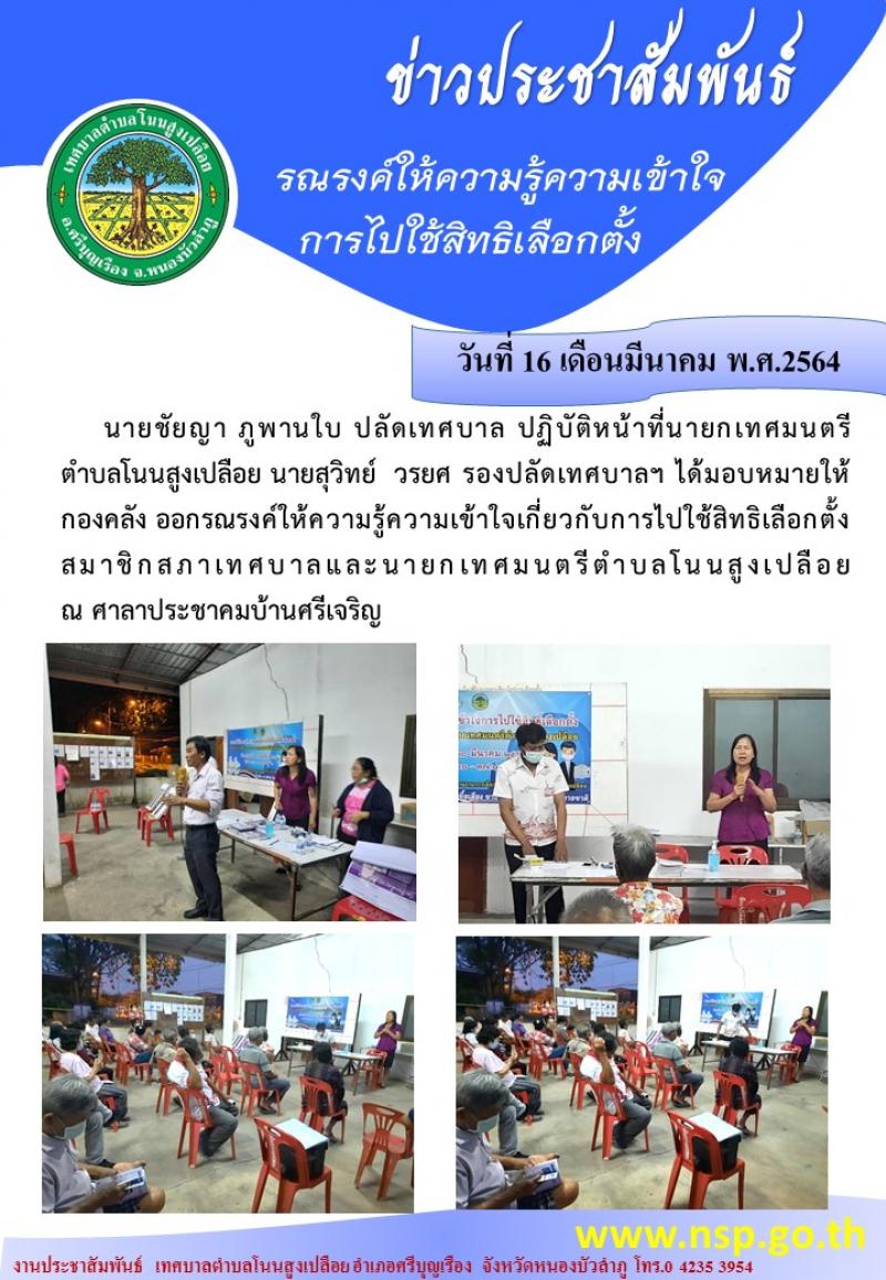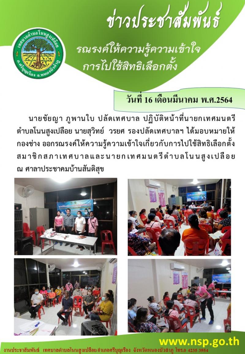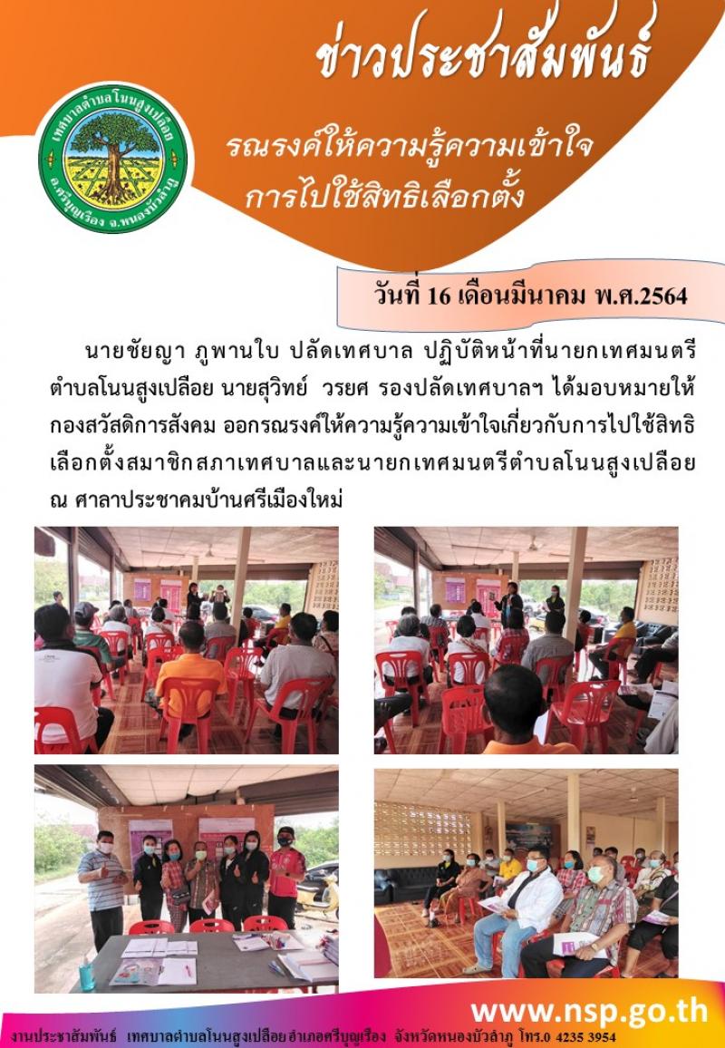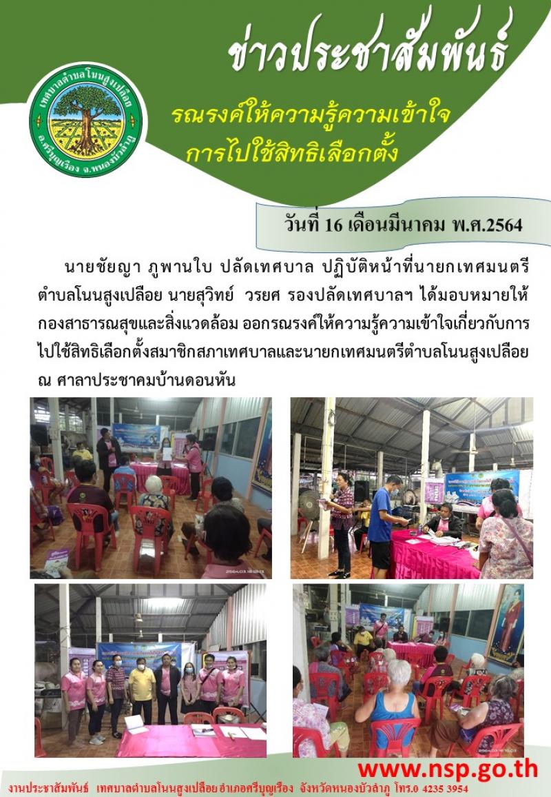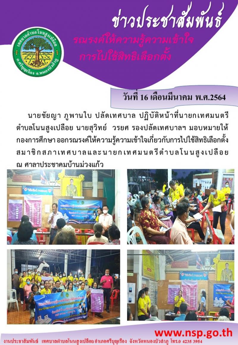 รณรงค์ให้ความรู้ความเข้าใจการไปใช้สิทธิเลือกตั้งสมาชิกสภาเทศบาลและนายกเทศมนตรีตำบลโนนสูงเปลือย