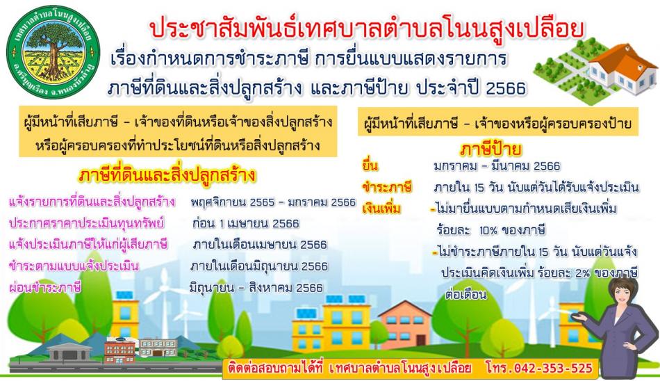 ประชาสัมพันธ์ กำหนดการชำระภาษี การยื่นแบบแสดงรายการภาษีที่ดินและสิ่งปลูกสร้าง และภาษีป้าย ประจำปี 2566 [16 ธันวาคม 2565]