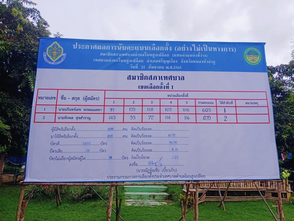 ประกาศผลการนับคะแนนเลือกตั้ง (อย่างไม่เป็นทางการ) [26 กันยายน 2565]