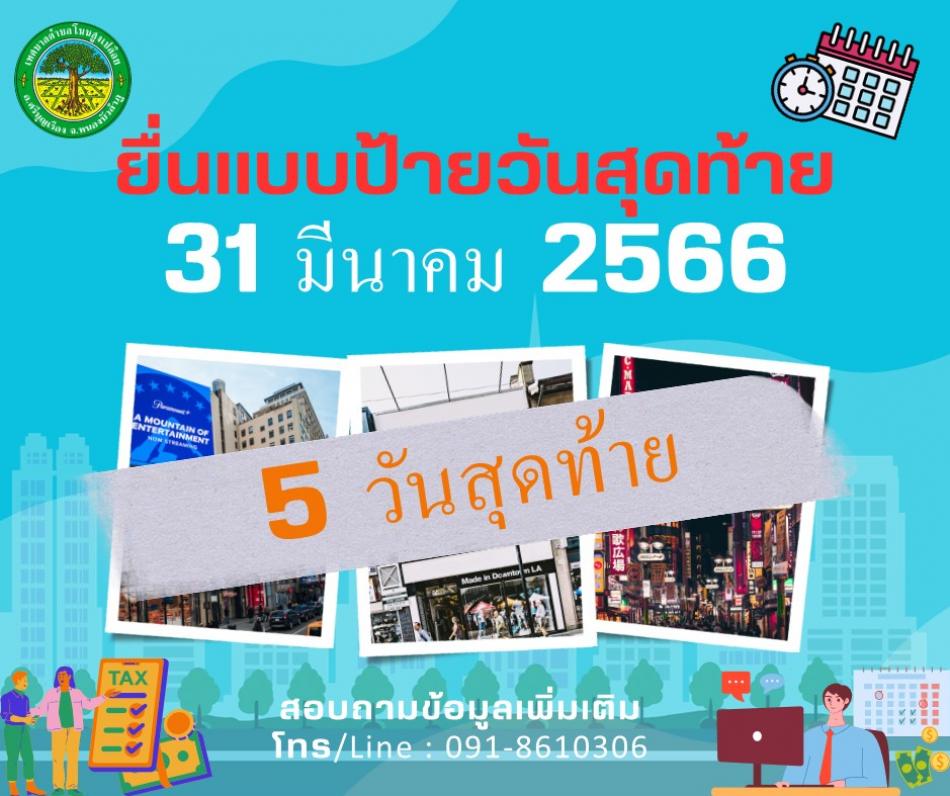 ประชาสัมพันธ์ ยื่นแบบป้าย 31 มีนาคม 2566 กำหนด 5 วันสุดท้าย [29 มีนาคม 2566]