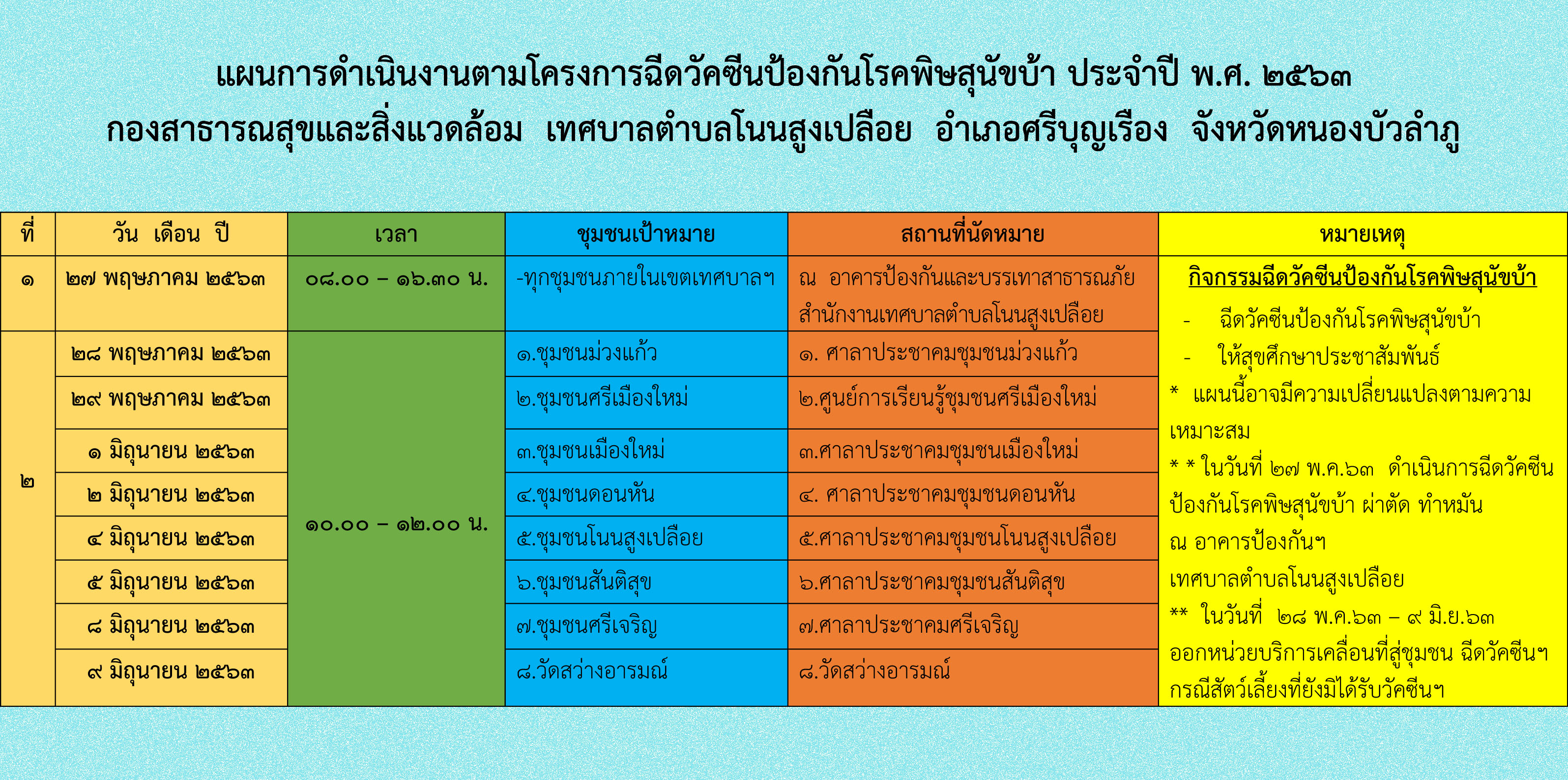 แผนการดำเนินงานโครงการฉีดวัคซีนป้องกันโรคพิษสุนัขบ้า ประจำปี พ.ศ.2563