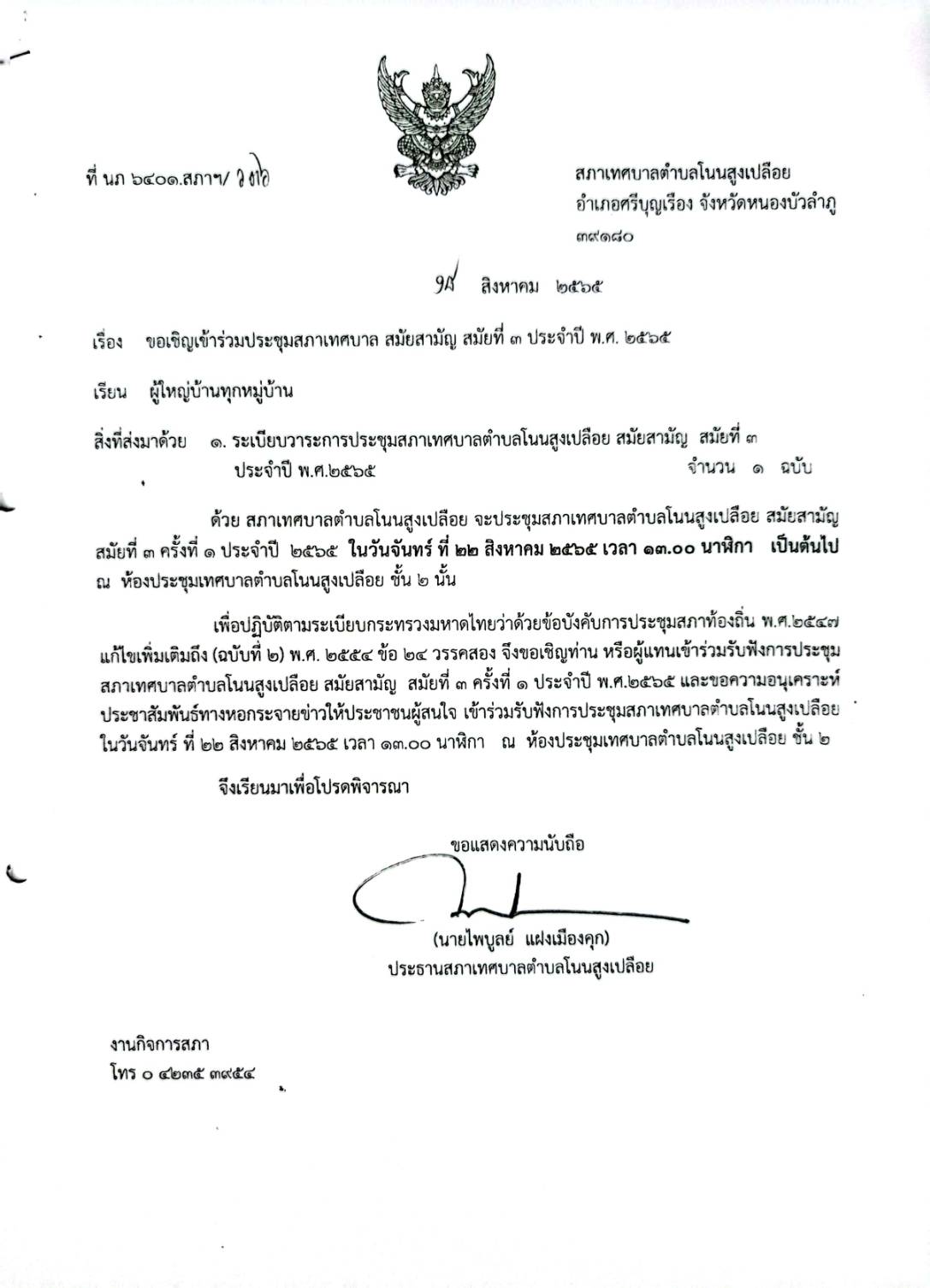 ขอเชิญรับฟังการประชุมสภาเทศบาลตำบลโนนสูงเปลือย สมัยสามัญ สมัยที่ 3 ครั้งที่ 2 ประจำปี พ.ศ.2565