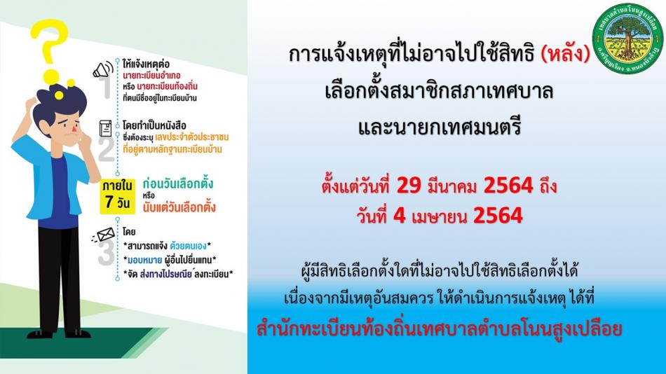 การแจ้งเหตุที่ไม่อาจไปใช้สิทธิเลือกตั้ง [31 มีนาคม 2564]