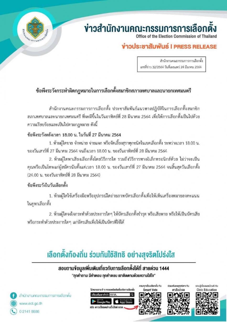 เจ้าหน้าที่เฝ้าระวังป้องกันการกระทำผิดกฏหมายเลือกตั้ง [23 มีนาคม 2564]