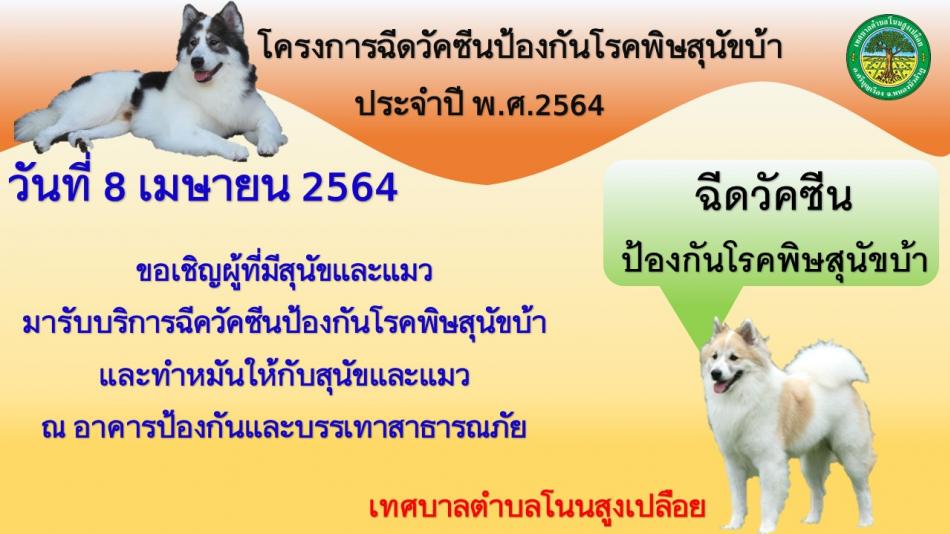 โครงการฉีดวัคซีนป้องกันโรคพิษสุนัขบ้า 2564 [5 เมษายน 2564]