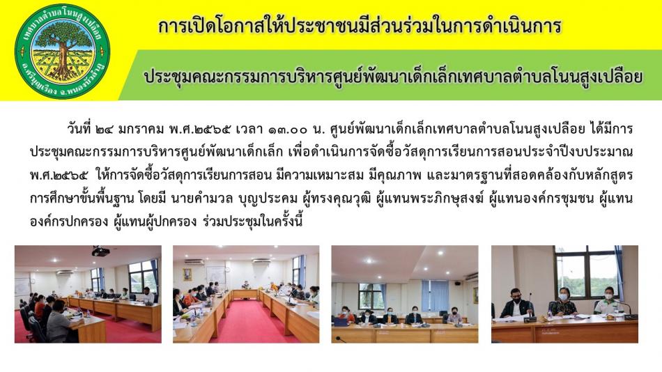 ประชุมคณะกรรมการบริหารศูนย์พัฒนาเด็กเล็กเทศบาลตำบลโนนสูงเปลือย ประจำปีงบประมาณ พ.ศ.2565 [26 มกราคม 2565]