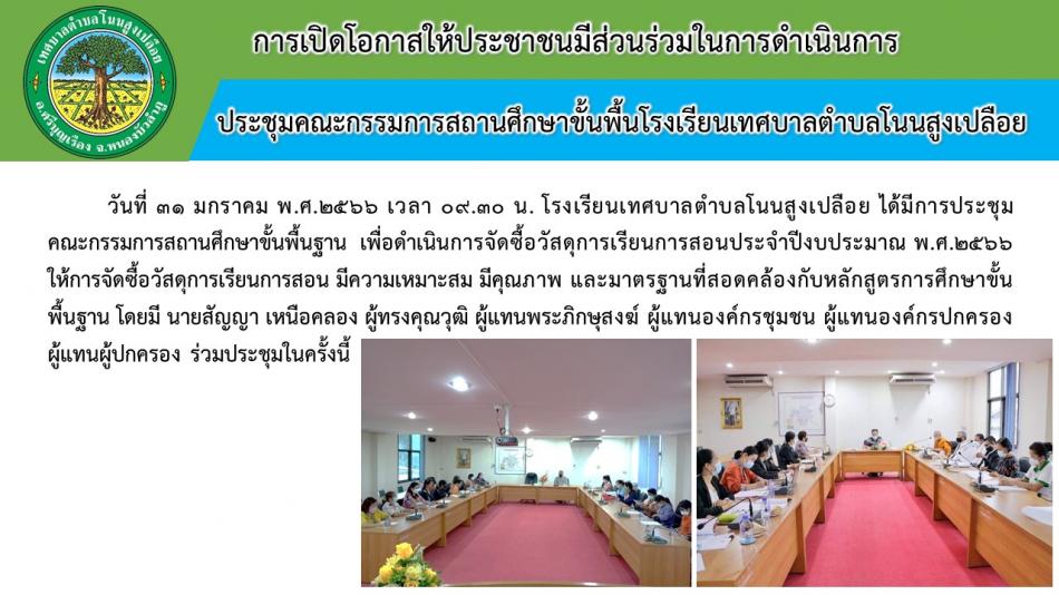 ประชุมคณะกรรมการสถานศึกษาขั้นพื้นโรงเรียนเทศบาลตำบลโนนสูงเปลือย ประจำปี 2566 [25 เมษายน 2566]