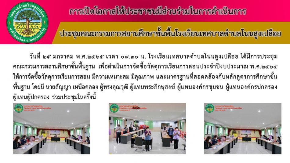 ประชุมคณะกรรมการสถานศึกษาขั้นพื้นฐานโรงเรียนเทศบาลตำบลโนนสูงเปลือย ประจำปีงบประมาณ พ.ศ.2565 [26 มกราคม 2565]