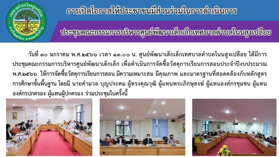 ประชุมคณะกรรมการบริหารศูนย์พัฒนาเด็กเล็กเทศบาลตำบลโนนสูงเปลือย ประจำปี 2566 [25 เมษายน 2566]