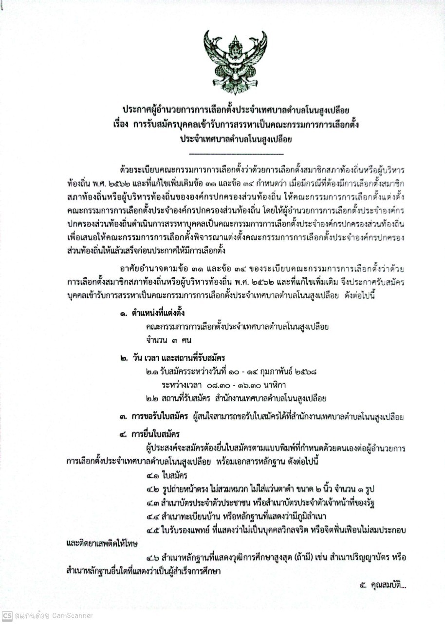 ประกาศ การรับสมัครบุคคลเข้ารับการสรรหาเป็นคณะกรรมการการเลือกตั้ง ประจำเทศบาลตำบลโนนสูงเปลือย